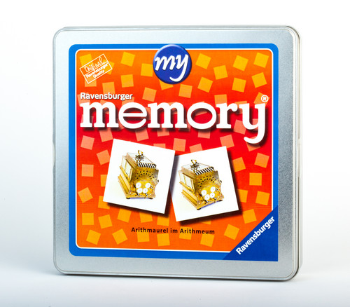 Memory Spiel mit verschiedenen Bildern der Rechenmaschine "Arithmaurel" als Motiv.