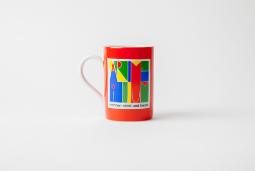 Die Tasse mit vierfarbigem Arithmeumslogo ist 10,5 cm hoch und hat einen Durchmesser von 7 cm.