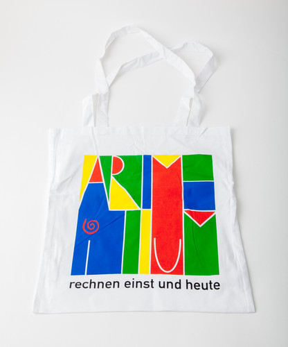 Die Tragetasche mit vierfarbigem Arithmeumslogo hat eine Kantenlänge von 40×37cm. Dank langer Träger eignet sie sich gut als Schultertasche.