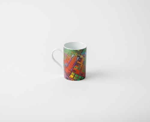 Der Becher „Chipdesign“ zeigt eine Makrofotografie des Chips „Bob“ und spiegelt damit die Ästhetik eines Chips wider.
