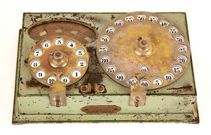 Léon Bollée's turquoise adding machine (1893) with dial input from the Musée de Tessé in Le Mans, France. © Arithmeum